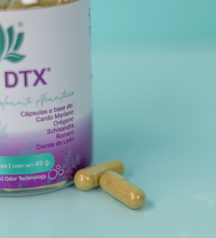 D-TX Caps: Cardo Mariano, Romero, Diente de León, Cola de Caballo, Cúrcuma, Schizandra, Pimienta Negra.